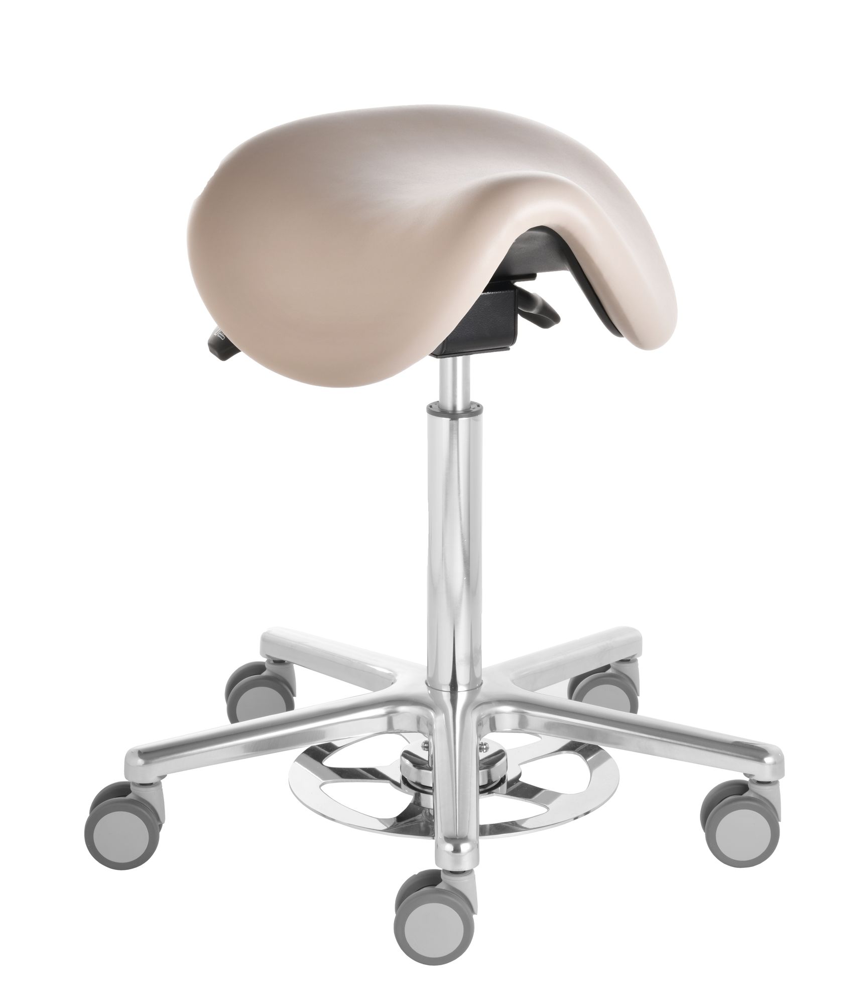 Sattelhocker mit Fußauslösung – Hygienisch höhenverstellbar ohne Handkontakt Sattelhocker docy dent "Hände frei"